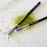 The rounded shape and flat medium sized natural bristled brush was created to pick up just the right amount of powder eyeshadows.